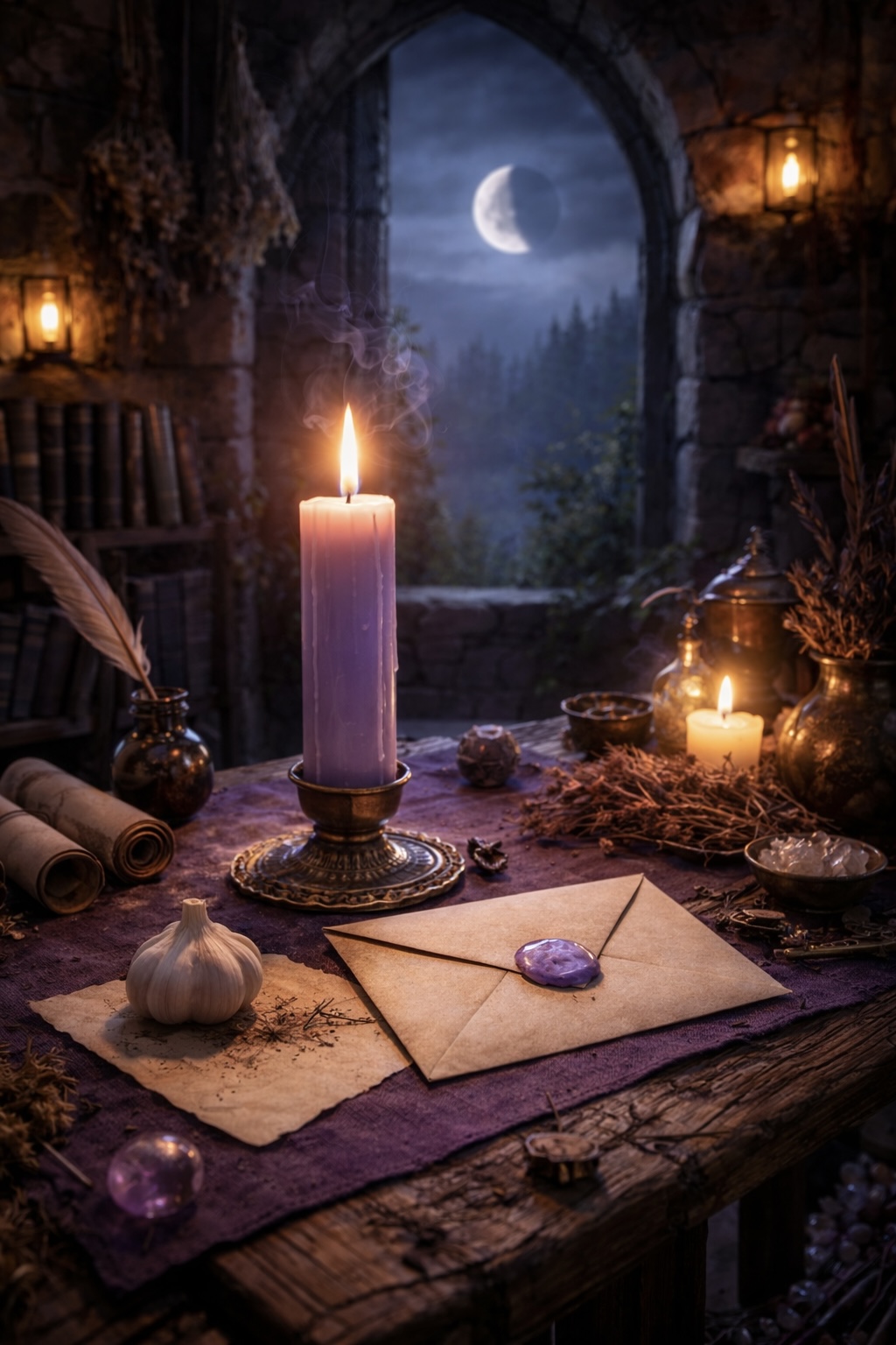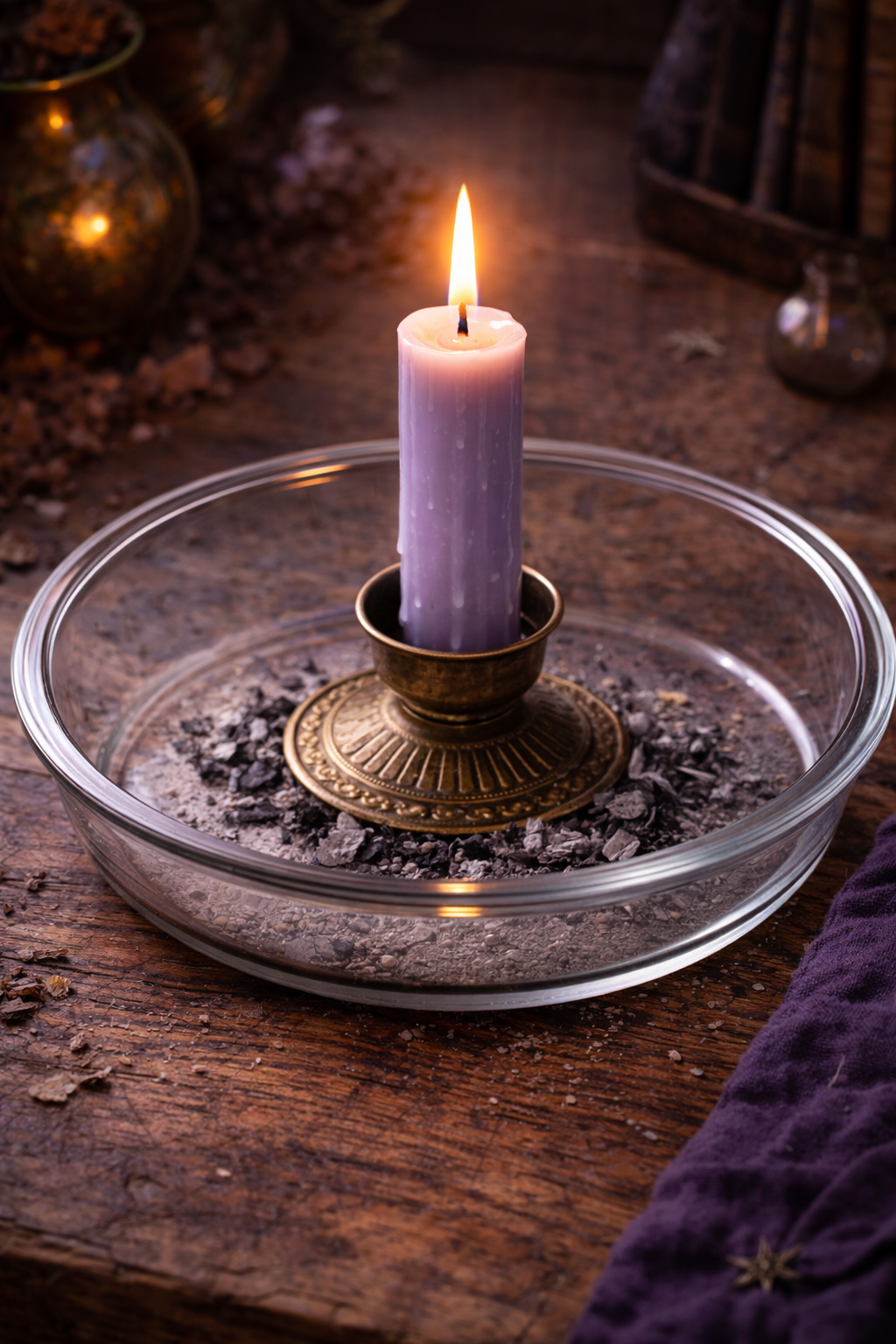 👉 Acende a vela roxa logo no início.