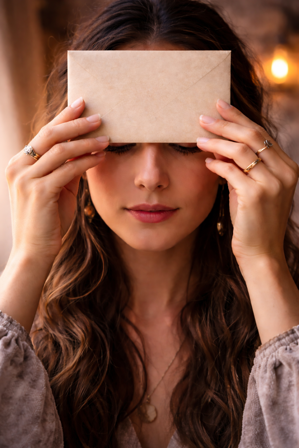 Depois de a cera arrefecer, encosta o envelope à testa, na zona do terceiro olho (entre as sobrancelhas).